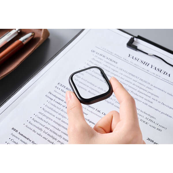 ポリカーボネート素材とガラスの2重構造で、Apple Watchの画面および側面部を保護します。