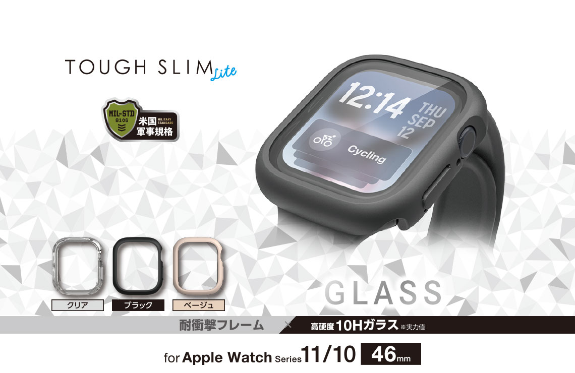 画面の視認性に優れる高透明なガラスと、しなやかで弾力性のあるTPU(熱可塑性ポリウレタン)樹脂で、端末を傷や汚れから守るApple Watch用TOUGH SLIM LITEケースです。