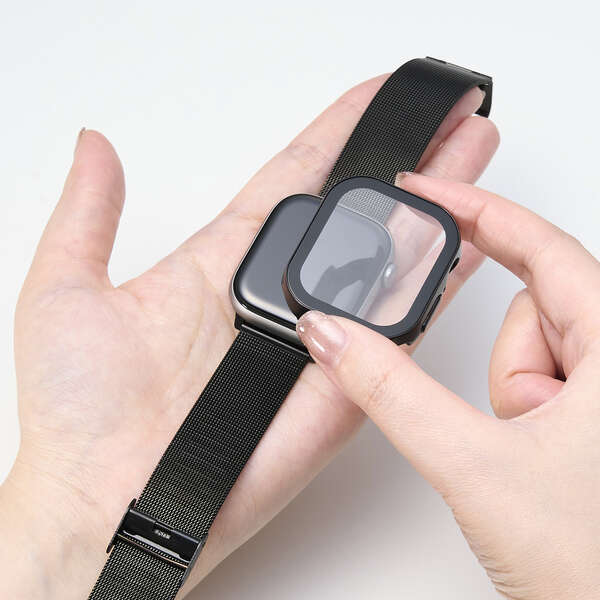 ポリカーボネート素材とガラスの2重構造で、Apple Watchの画面および側面部を保護します。