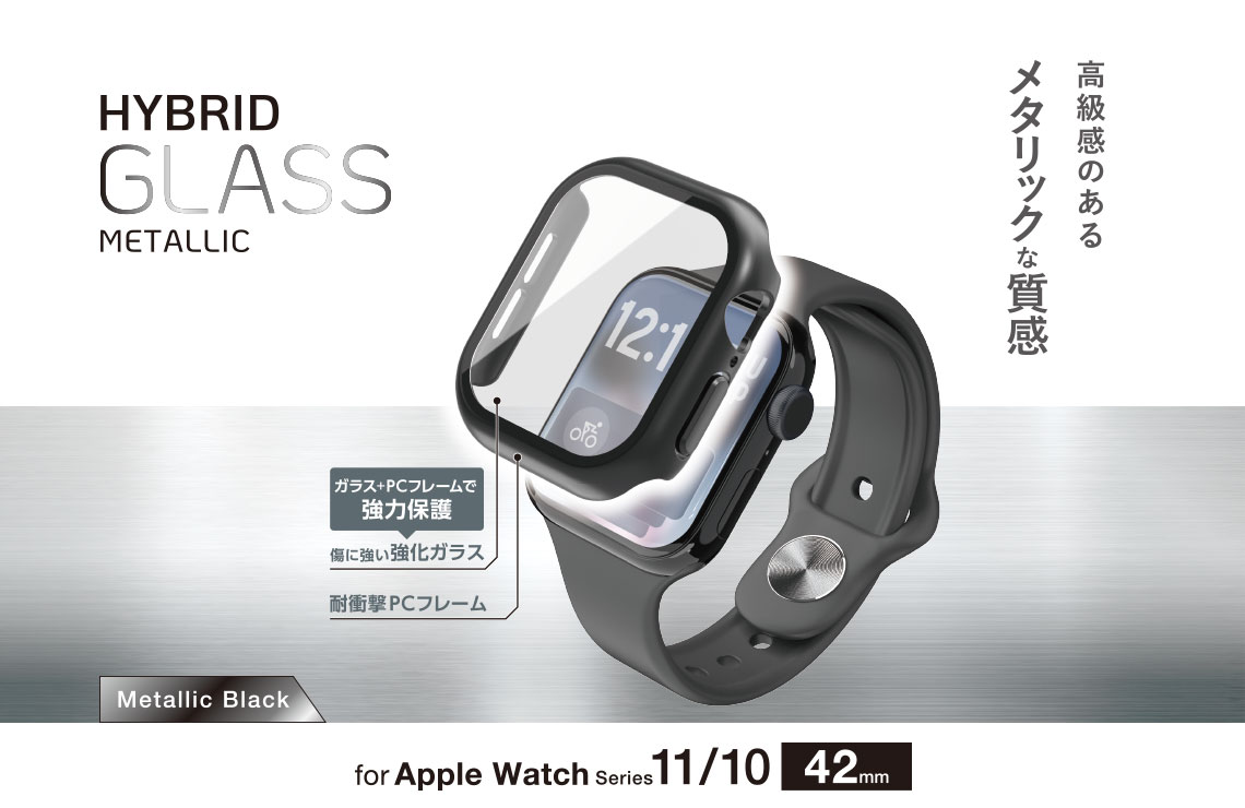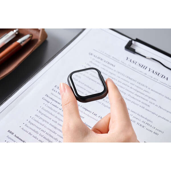 ポリカーボネート素材とガラスの2重構造で、Apple Watchの画面および側面部を保護します。