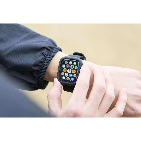 画面の視認性に優れる高透明なガラスと、しなやかで弾力性のあるTPU(熱可塑性ポリウレタン)樹脂で、端末を傷や汚れから守るApple Watch用TOUGH SLIM LITEケースです。