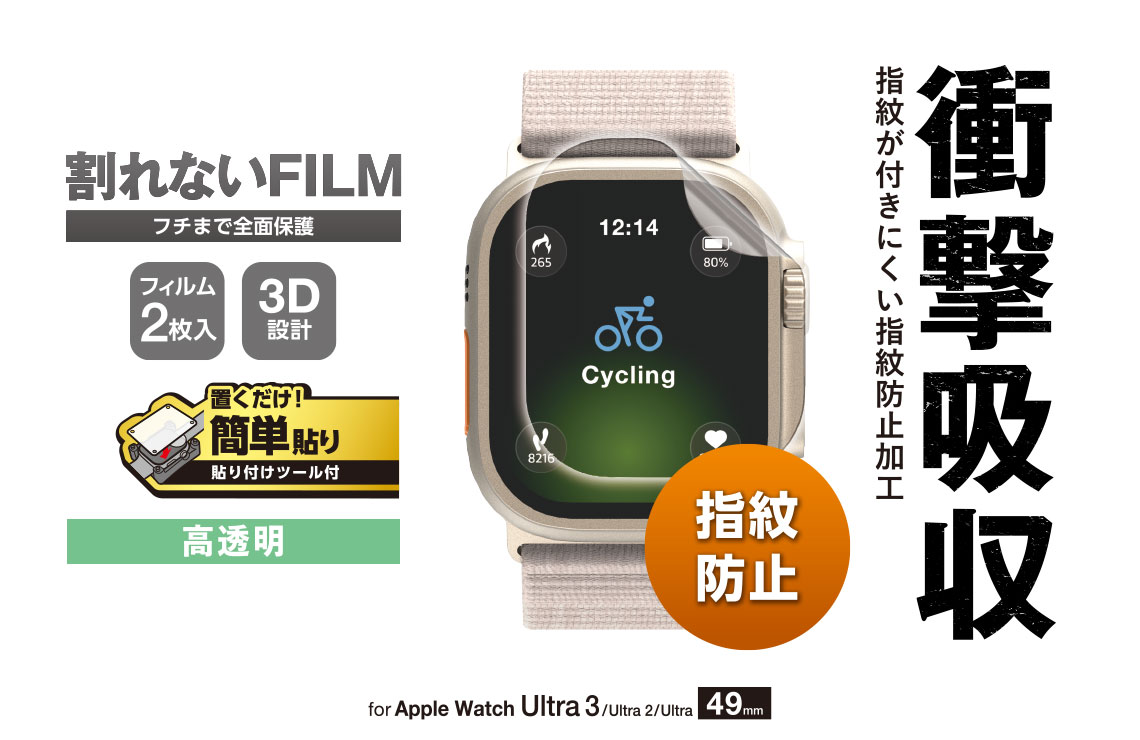 端末のデザインを損なわず、画面を隅から隅まで保護できます。曲面に沿った3D設計で、衝撃吸収・高透明タイプのApple Watch用フルカバーフィルムです。貼り付けの際に、ずれやすいフィルムをぴったりと位置合わせできる貼り付けツール付きです。