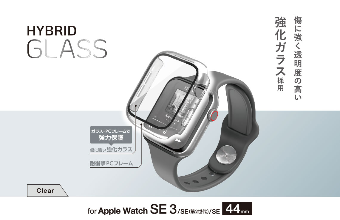 ポリカーボネート素材とガラスの2重構造で、Apple Watchの画面および側面部を保護します。