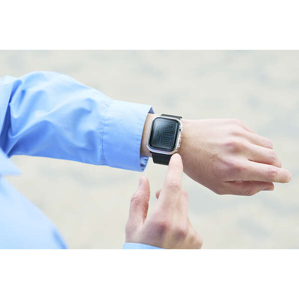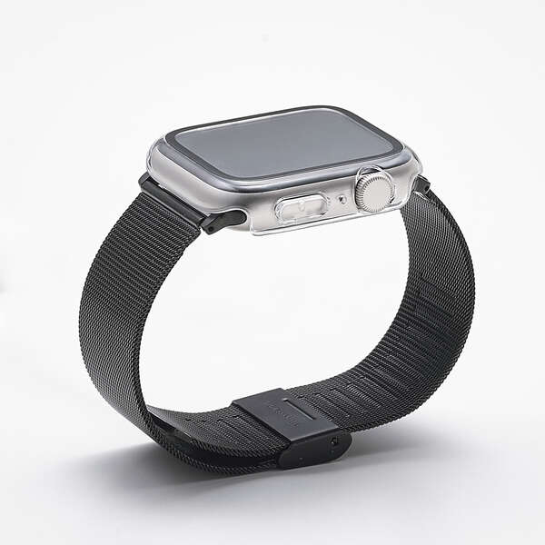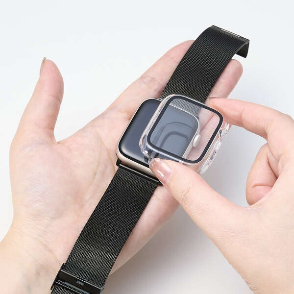 画面の視認性に優れる高透明なガラスとポリカーボネート樹脂で、端末を傷や汚れから守るApple Watch用フルカバーケースです。