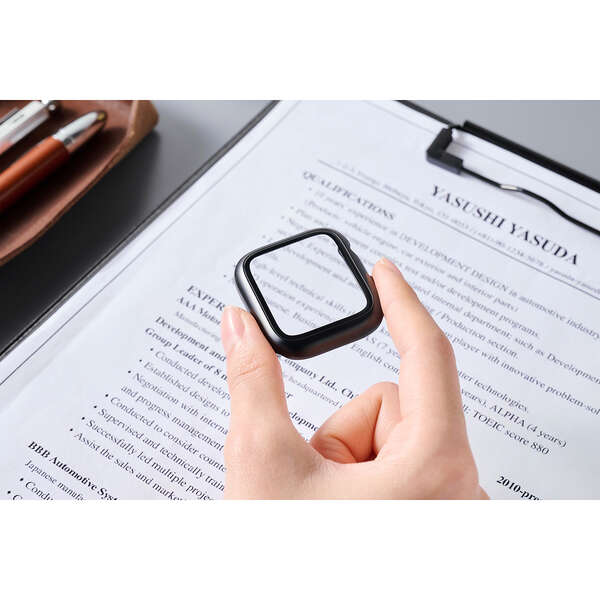 ポリカーボネート素材とガラスの2重構造で、Apple Watchの画面および側面部を保護します。