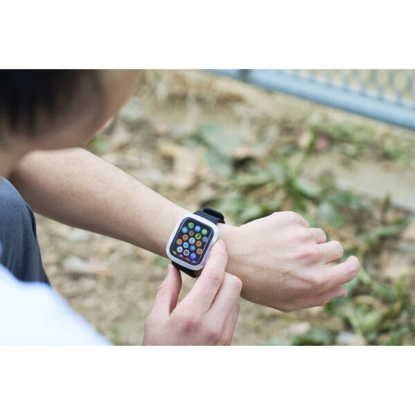 TPU(熱可塑性ポリウレタン)素材とガラスの2重構造で、Apple Watchの画面および側面部を保護します。