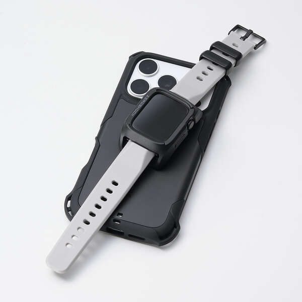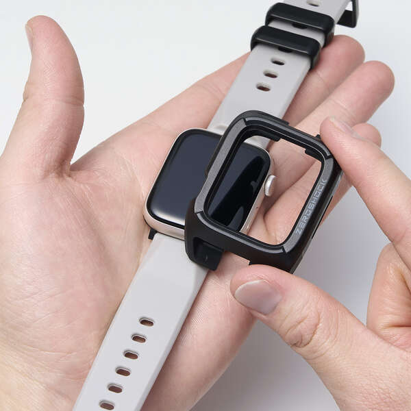 端末を不意の衝撃や傷、汚れから守る。強じんなポリカーボネート素材としなやかで弾力性のあるTPU(熱可塑性ポリウレタン)素材によるデュアルストラクチャー(2重構造)を採用した、Apple Watch用ZEROSHOCKバンパーケースです。