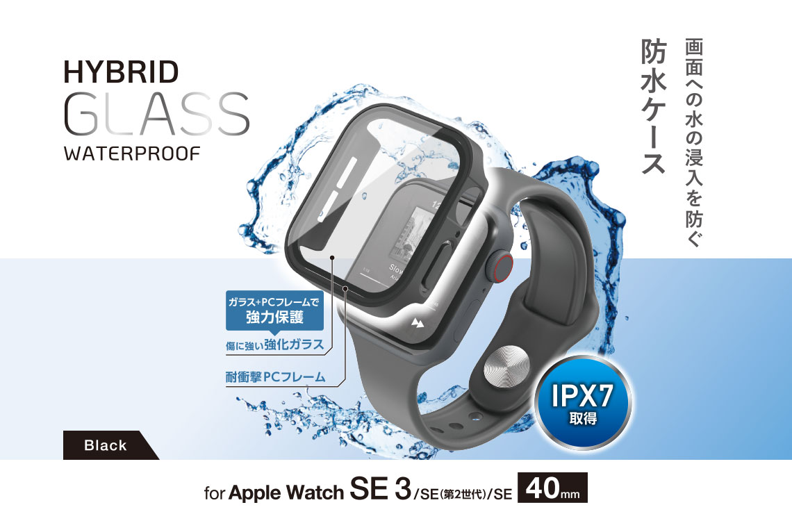JIS保護等級 IPX7相当の防水性能で画面への水の侵入を防ぎ、端末の画面および側面部を保護し傷や汚れから守るApple Watch用フルカバーケースです。