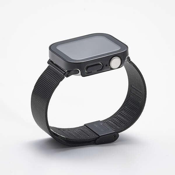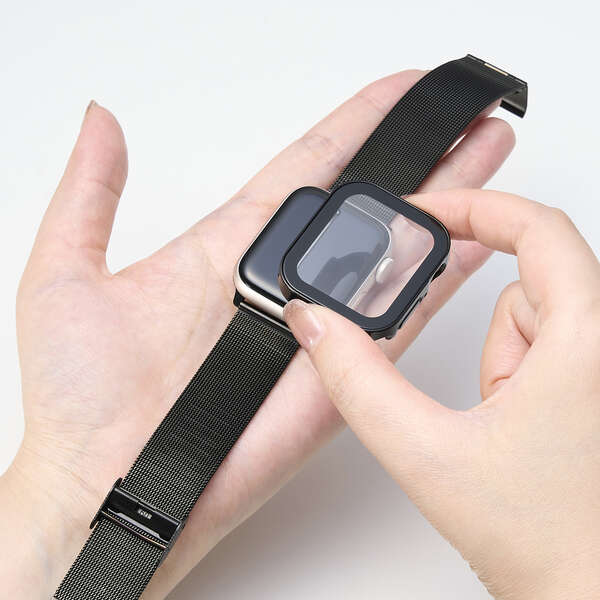 ポリカーボネート素材とガラスの2重構造で、Apple Watchの画面および側面部を保護します。