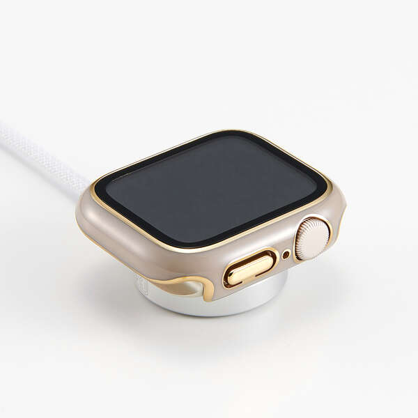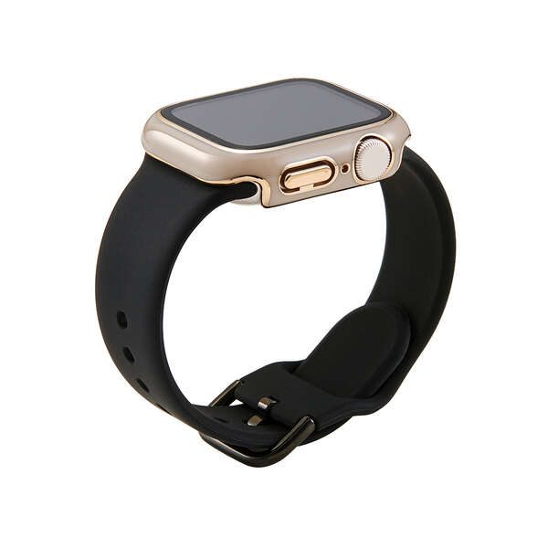画面の視認性に優れる高透明なガラスとポリカーボネート樹脂で、機器本体を傷や汚れから守る、メタリックラインが美しく際立つApple Watch用フルカバーケースです。