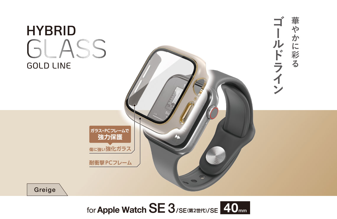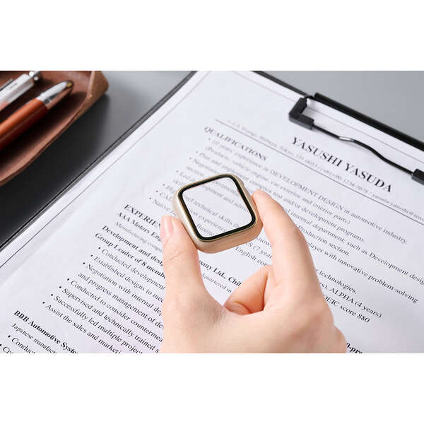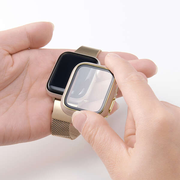 ポリカーボネート素材とガラスの2重構造で、Apple Watchの画面および側面部を保護します。