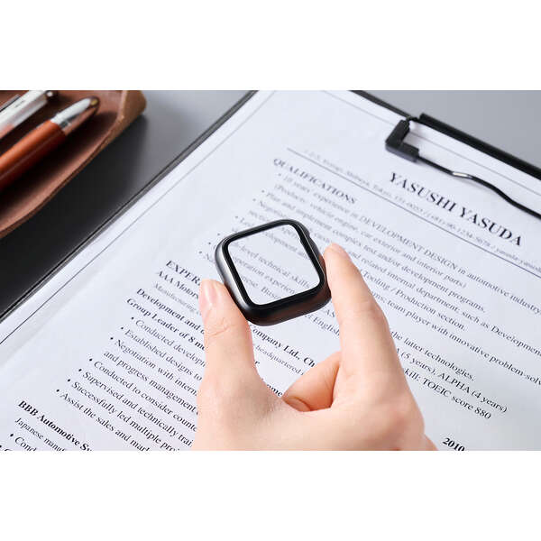 ポリカーボネート素材とガラスの2重構造で、Apple Watchの画面および側面部を保護します。