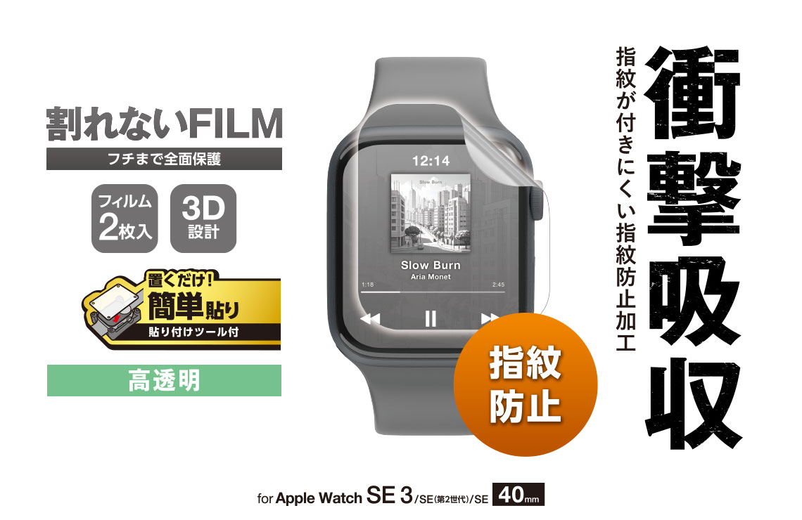 端末のデザインを損なわず、画面を隅から隅まで保護できます。曲面に沿った3D設計で、衝撃吸収・高透明タイプのApple Watch用フルカバーフィルムです。貼り付けの際に、ずれやすいフィルムをぴったりと位置合わせできる貼り付けツール付きです。