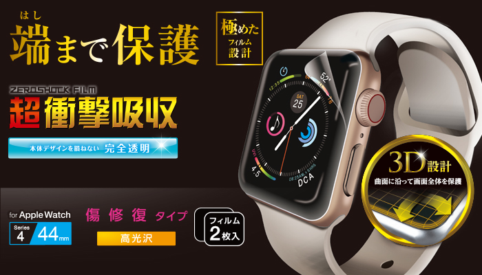 端末のデザインを損なわず、画面の端まで保護する極み設計。 曲面に沿った3D設計で、Apple Watch SE、Series 6、5、4 [44mm]を衝撃から守り、特殊フィルムを採用した傷リペアタイプのフルカバーフィルム。