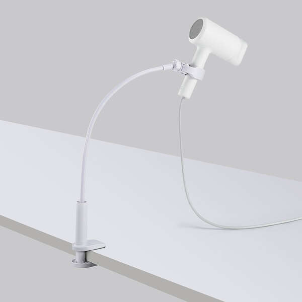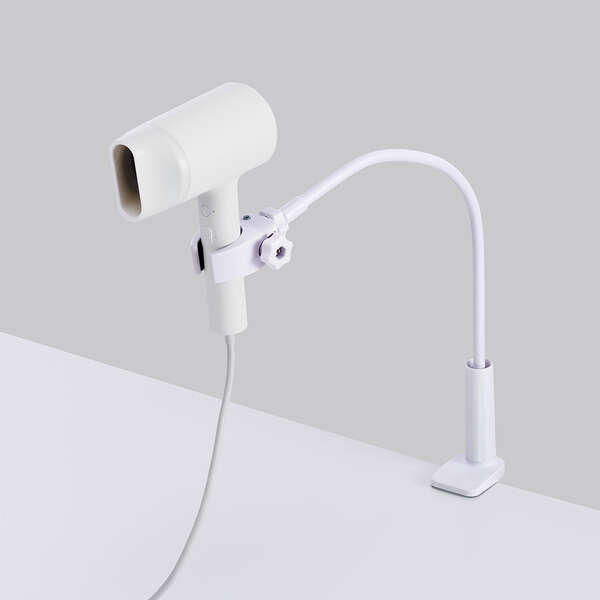 ドライヤー時間を快適に!リビングの机などに固定できる、クランプ式のドライヤースタンドです。使うときだけ簡単に設置でき、両手が自由に使え、スキンケアやスマートフォンを見ながらの“ながら乾燥”が可能。タオルドライやブローの効率もアップし、子どもやペットのヘアドライにも便利です。曲げて動かせるアーム&360度回転ホルダーで、角度や高さも自由に調節できます。