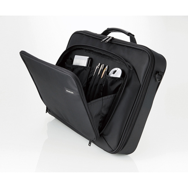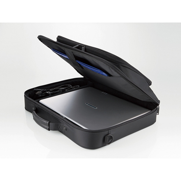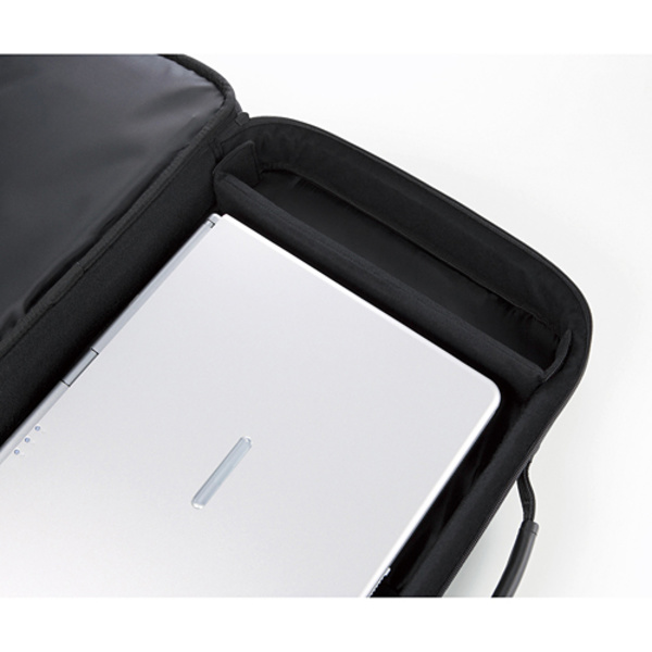 大きく開いて収納物を出し入れしやすいフルオープンタイプ。16.4インチワイドサイズ以下のパソコンが収納できるキャリングバッグ。