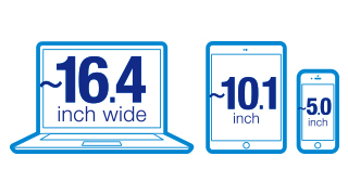 16.4インチまでのノートパソコン、10.1インチまでのタブレット、5インチまでのスマートフォン、全てを収納可能です。
