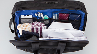 手提げ、肩掛け、背負うの3パターンの持ち方ができる3WAYビジネスバッグです。 荷物量に合わせてマチが広がり、外泊出張にも対応できる大容量を収納可能です。パソコン収納ポケットには、パソコンを衝撃から保護するクッション素材を使用しています。