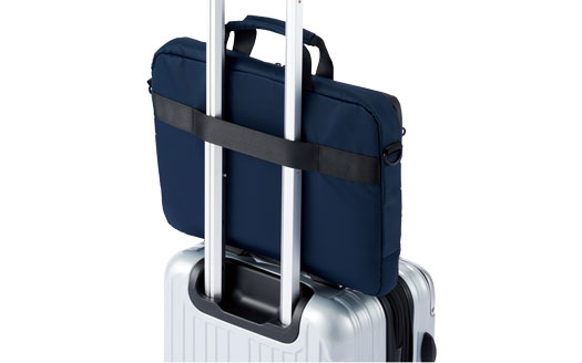 パソコンや書類、小物などを持ち運べる十分な収納スペースを備えたスリムタイプのキャリングバッグです。