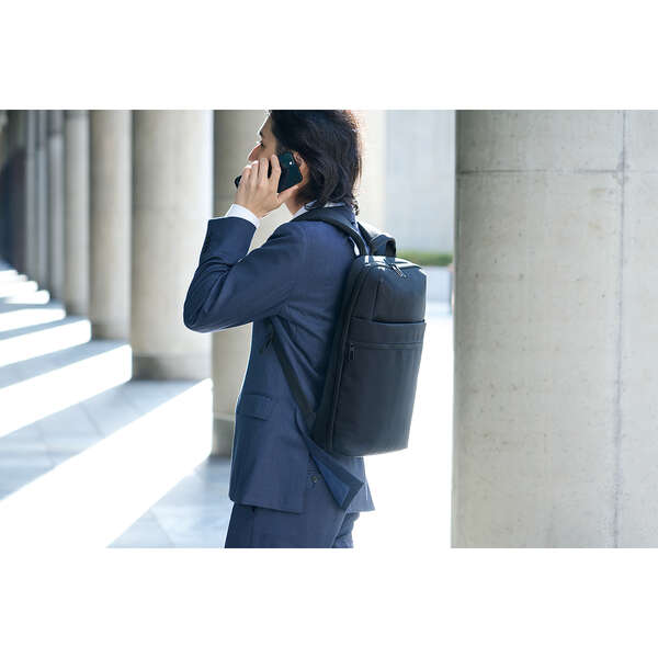 スリムに収納、コンパクトに持ち運べる薄型のビジネスバックパックです。