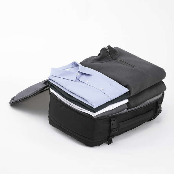 出張や旅行におすすめ!真空圧縮と拡張機能を兼ね備えた、機内持ち込み対応のトラベルバックパックです。手で押すだけで衣類をギュッと圧縮できるので、荷物がすっきりまとまり収納力アップ。最大約40Lまで拡張でき、荷物が多くなりがちな移動もスマートにこなせます。