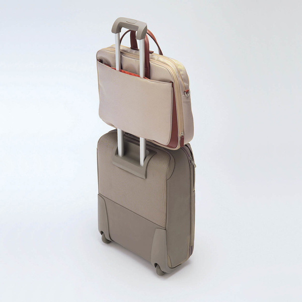Vario scena(バリオシーナ)シリーズ キャリングバッグ。バッグ下部に立体的に張りつめた本革のアクセントが様々なシーンでシャープなイメージを演出します。