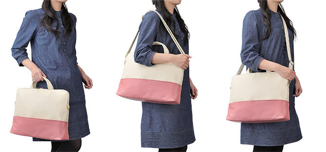 手持ち、肩がけ、斜めがけ。スタイルに合わせて持ち方を選べる3wayタイプ。いつものバッグと一緒に、ノートパソコンが必要なときだけ「別持ち」できるキャリングバッグ“Betsumo(ベツモ)"です。