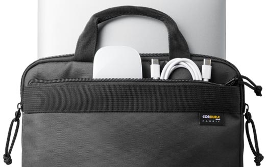 ACアダプタやマウスなどの小物を整理して収納できるフロントポケットがついています。