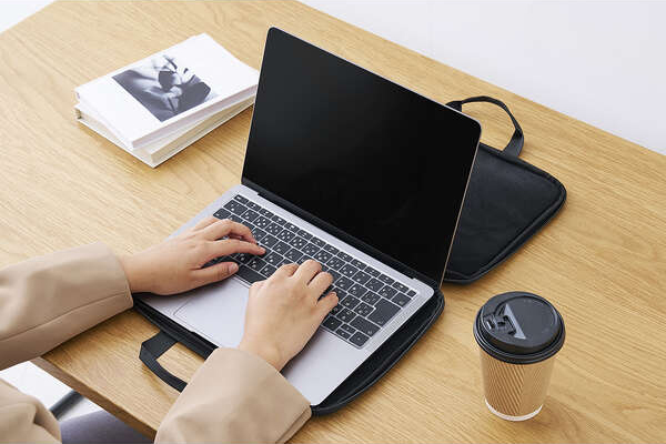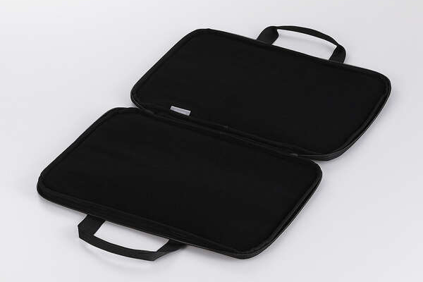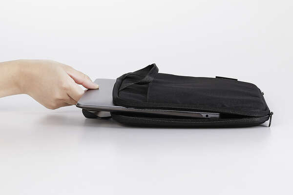 三辺が大きく開くタイプなので、バッグを開いてそのままパソコン操作が可能。出し入れの手間を省けて、作業を効率よく進められます。
