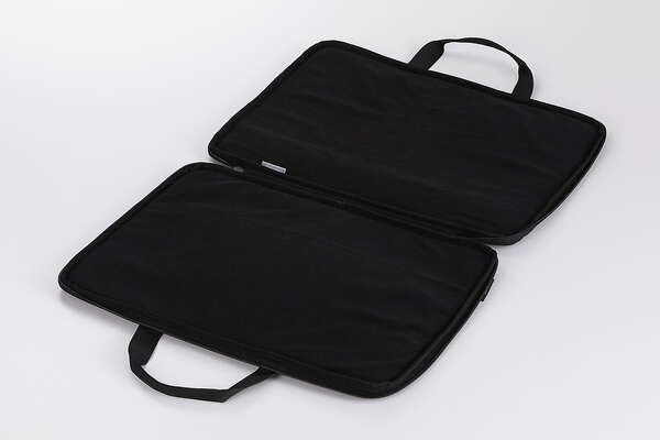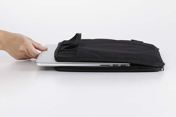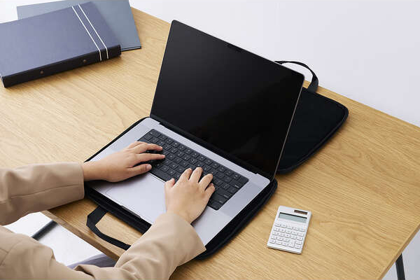 三辺が大きく開くタイプなので、バッグを開いてそのままパソコン操作が可能。出し入れの手間を省けて、作業を効率よく進められます。