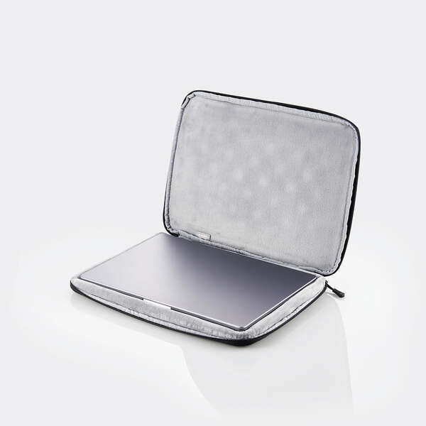 側面を360度保護するコーナーガードクッションと、天面・底面それぞれに内蔵された低反発ウレタンフォーム、機器表面に優しい起毛生地によって、収納物を徹底的に保護。撥水加工を施した落ち着いた風合いの生地を採用したシンプルなデザイン。保護性能とスリムを両立させた、MacBook専用のインナーケース。