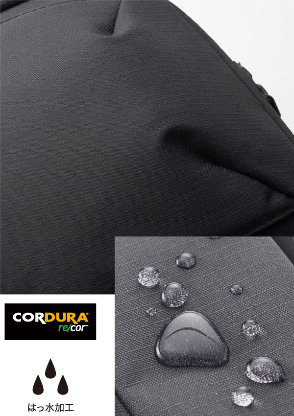 100%リサイクルCORDURA素材、軽量でしなやかな、環境に優しいファブリック