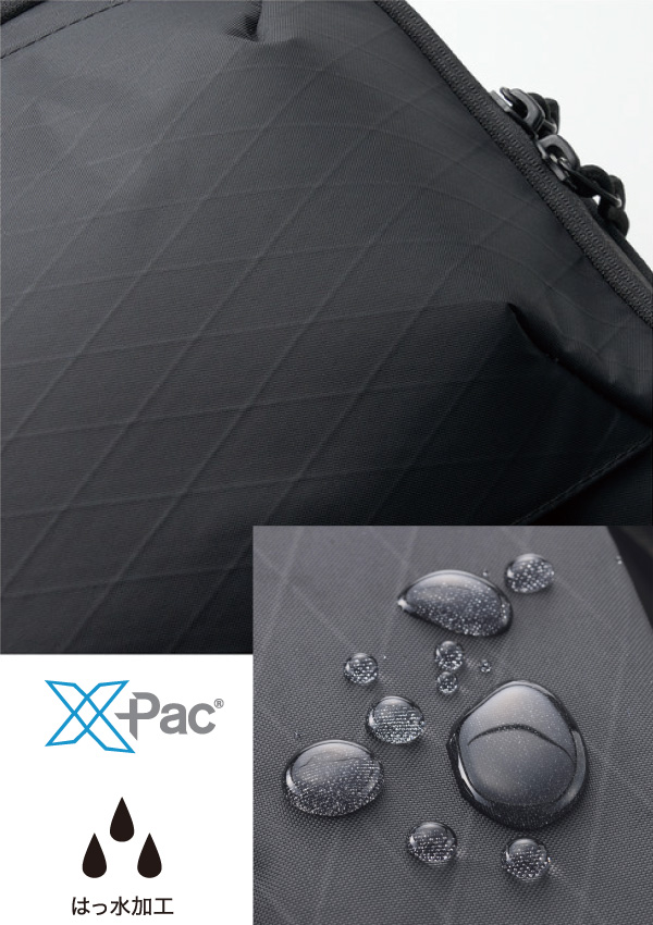 バッグ表面には、撥水加工を施しています。また、パソコンコンパートメントには、PUラミネートファスナーを採用しています。