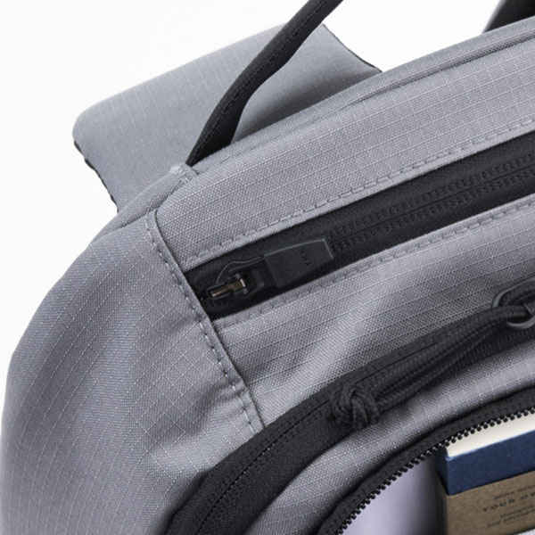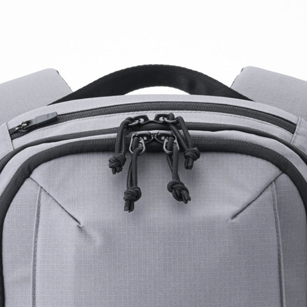 左右と上部の3カ所にハンドルを配置。荷物の出し入れやちょっとした運搬をアシストします。バックパックを正面から見た際に目立たない設計にしており、外観をシンプルに保ちます。