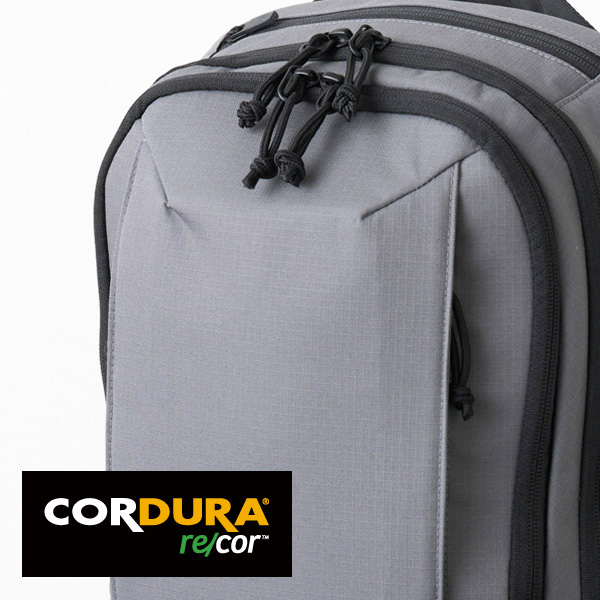 本体外装生地には高い耐摩耗性と耐久性を持つCORDURA re/CORファブリックを採用しています。