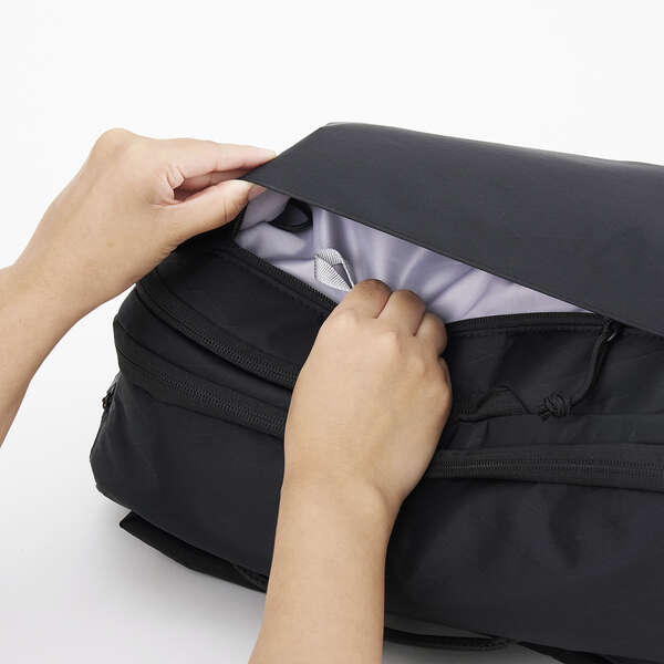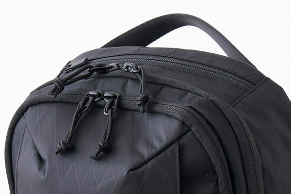 左右と上部の3カ所にハンドルを配置。荷物の出し入れやちょっとした運搬をアシストします。バックパックを正面から見た際に目立たない設計にしており、外観をシンプルに保ちます。