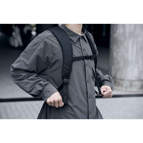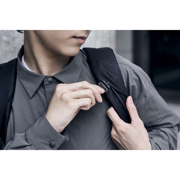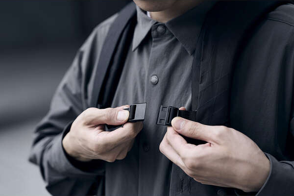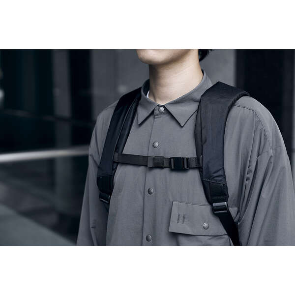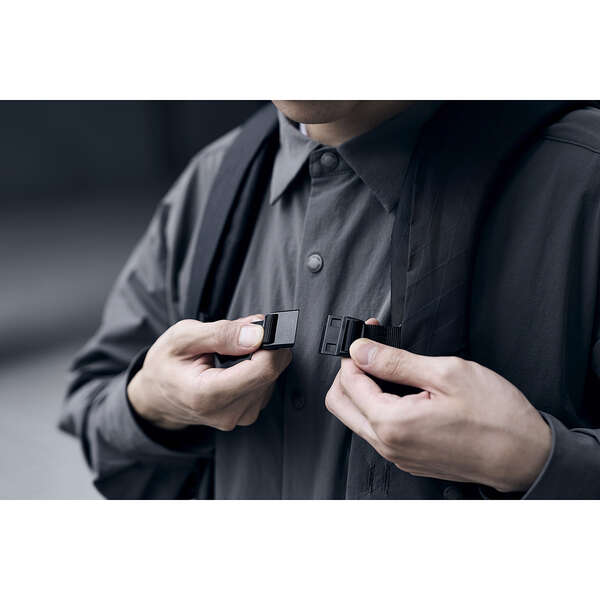 チェストベルトでしっかり荷物を体に添わせ、背負い心地を調整できます。マグネットバックルを採用しており、片手で簡単に着脱可能です。不要な場合はチェストベルト自体を取り外すこともできます。