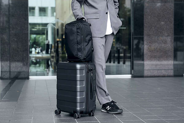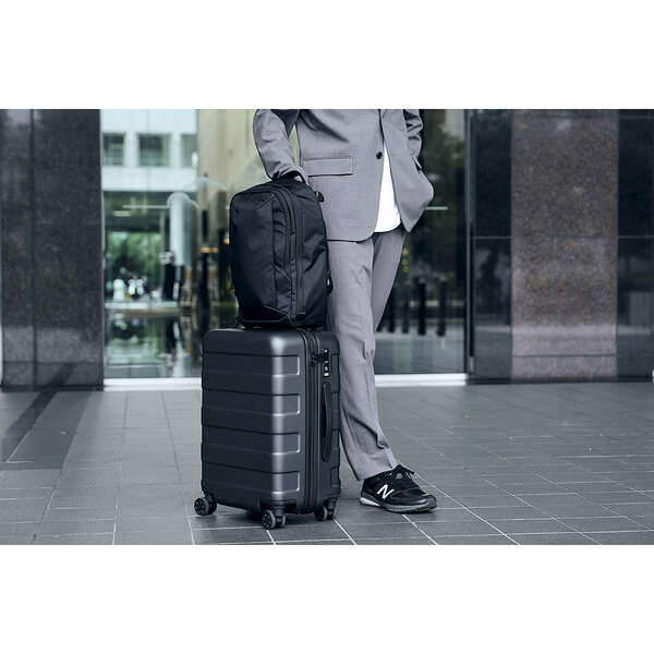 キャリーケースと一緒に持ち運べるようにキャリーベルトを背面に配置。出張時の移動もスマートにこなせます。