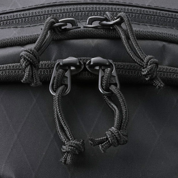 横持ちの際にもファスナーを引きやすいよう、ファスナーエンドにループ状のつまみを備えています。