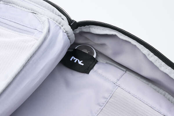 メイン気室内部のネームタグはAirTagを入れることができるポケット仕様になっています。バッグ本体の紛失防止に役立ちます。