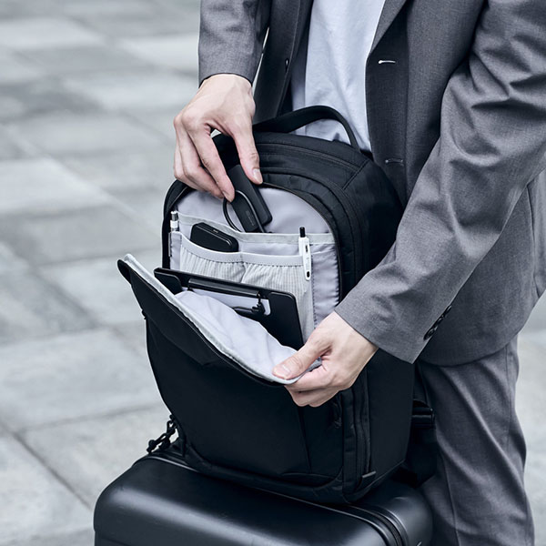 仕事と生活を自由に行き来する現代のライフスタイルに寄り添い、最適なデザインと機能を追求した、バックパックです。