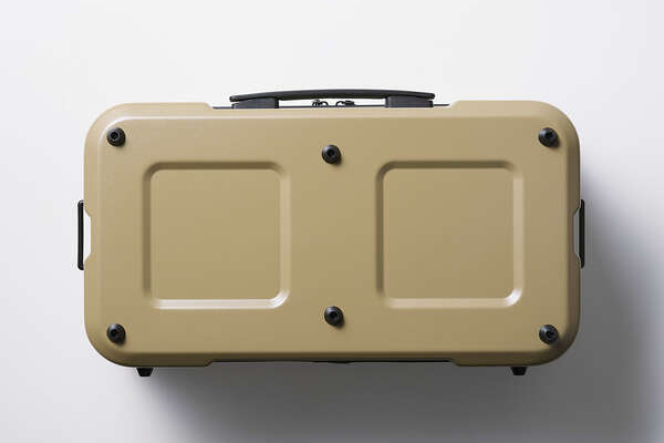 平置き時、横置き時の2つの面の四隅それぞれに底鋲が付いており、平らな場所では、地面に直接触れることなく安心して置くことができます。スタッキング時には、下段ケースの凹部と底鋲が合わさることで、位置が固定されます。