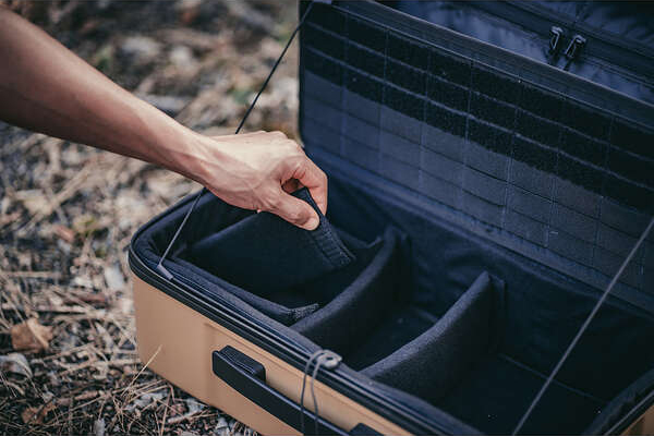 収納性が高くさまざまなギアをしっかりと保護します。内側には厚みのあるクッションを5枚付属しています。配置を自由に変えることができ、最大6か所に仕切れます。また着脱式で簡単に取り外せます。
