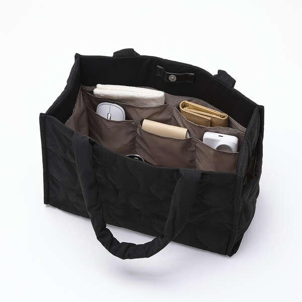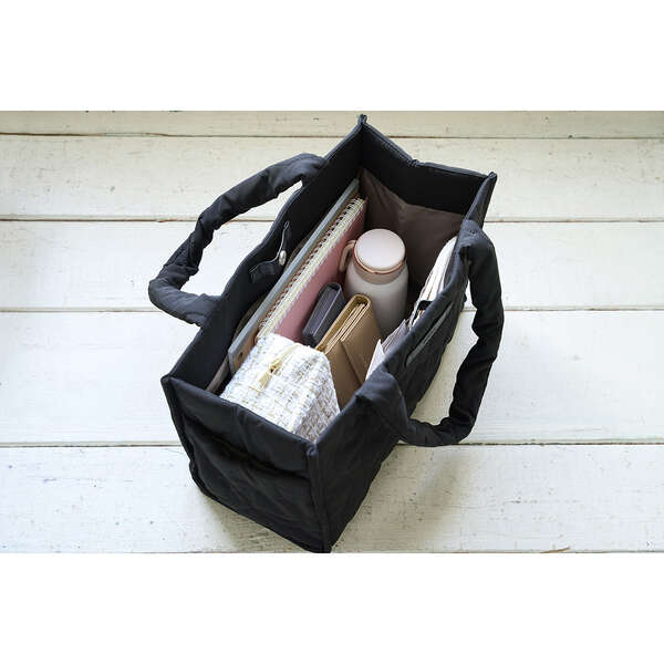 在宅ワークの道具管理や社内移動もスムーズにできる!ハンドル付きのツールボックスです。大容量設計で、資料やワークツールをまとめてすっきり収納可能。上品な光沢のあるオニオンステッチのキルティング素材を採用した、大人カジュアルなデザインです。