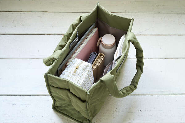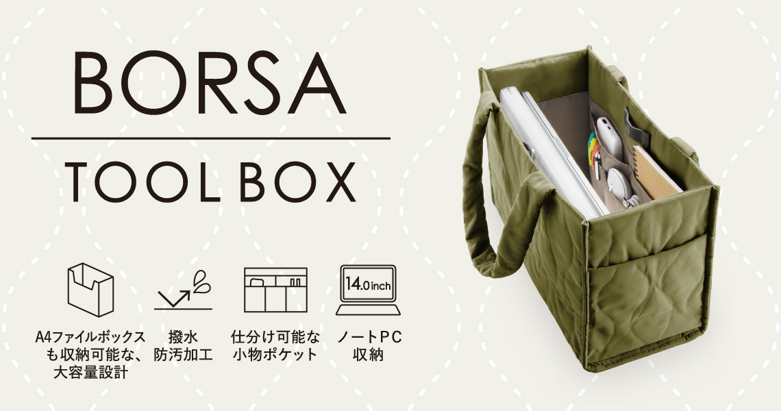 在宅ワークの道具管理や社内移動もスムーズにできる!ハンドル付きのツールボックスです。大容量設計で、資料やワークツールをまとめてすっきり収納可能。上品な光沢のあるオニオンステッチのキルティング素材を採用した、大人カジュアルなデザインです。