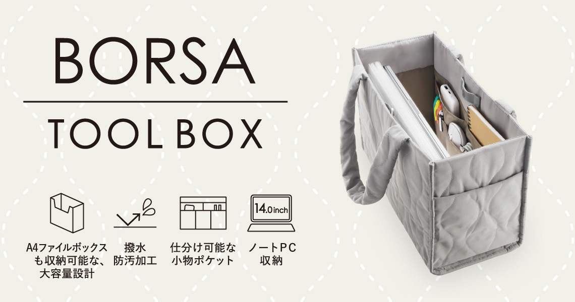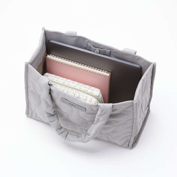 在宅ワークの道具管理や社内移動もスムーズにできる!ハンドル付きのツールボックスです。大容量設計で、資料やワークツールをまとめてすっきり収納可能。上品な光沢のあるオニオンステッチのキルティング素材を採用した、大人カジュアルなデザインです。