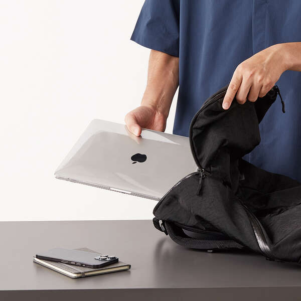 MacBook本体にジャストフィットする、ハード素材の専用カバーです。