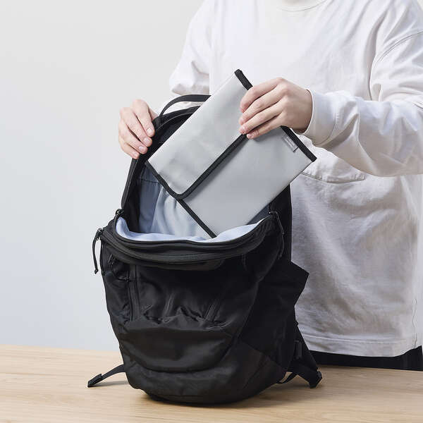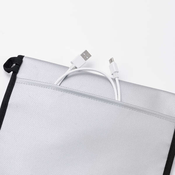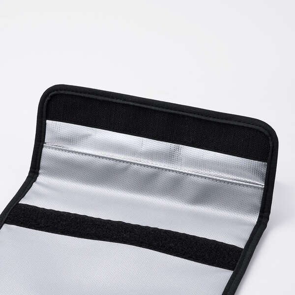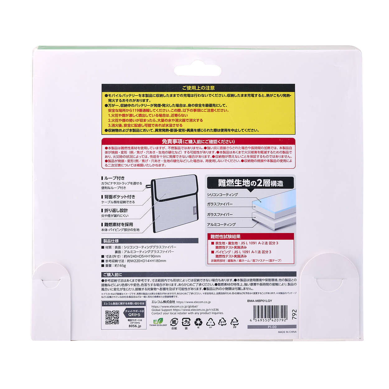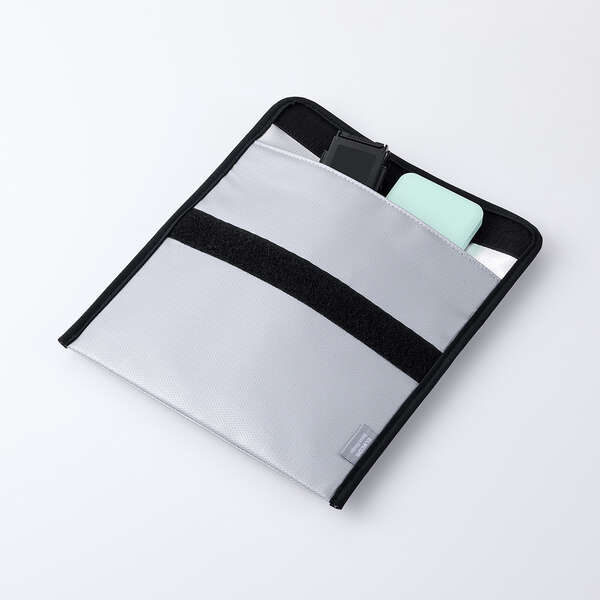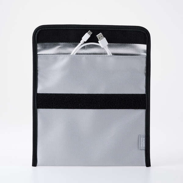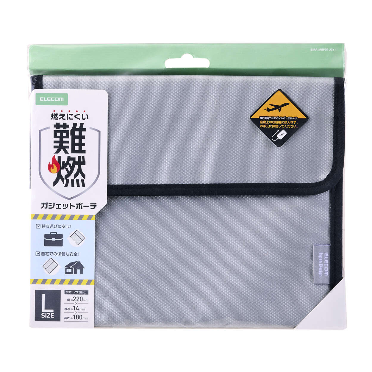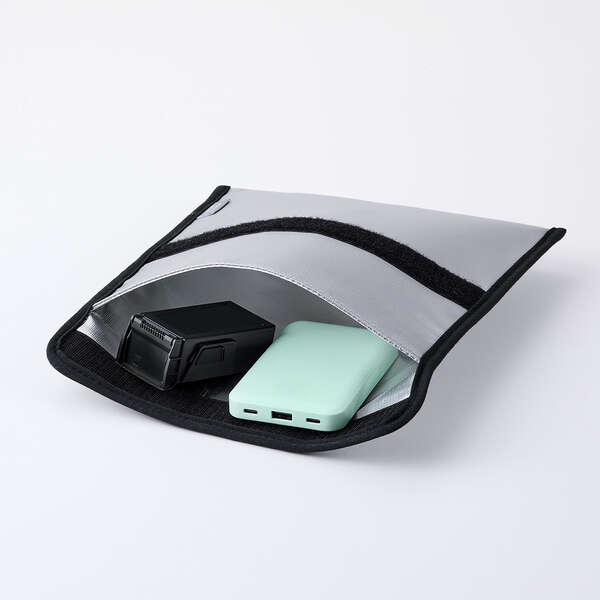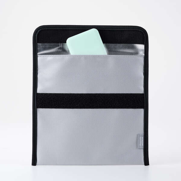 いざというときの備えに!燃えにくい素材のガジェットポーチです。難燃性試験をクリアした生地を二重に使い、すき間をしっかり塞ぐ構造を採用。発火したときの延焼や、火・煙の漏れを抑えます。背面ポケットにはケーブルも収納できて便利。大型・複数のモバイルバッテリーなどのガジェット類をまとめて収納可能なサイズです。