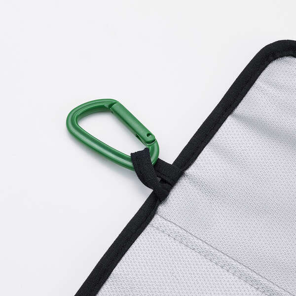 カラビナを付けてバッグに取り付けられるループ付き。収納物が燃えて熱くなった場合でも持ちやすい形状です。