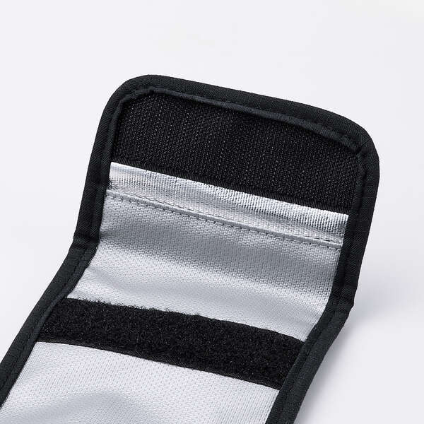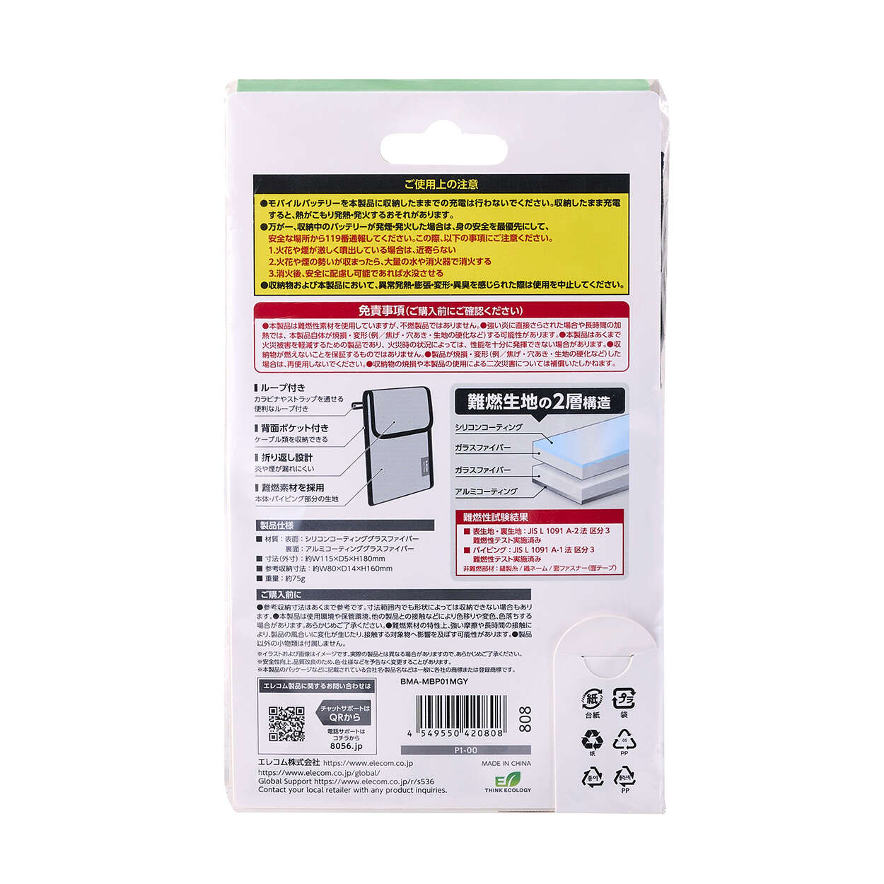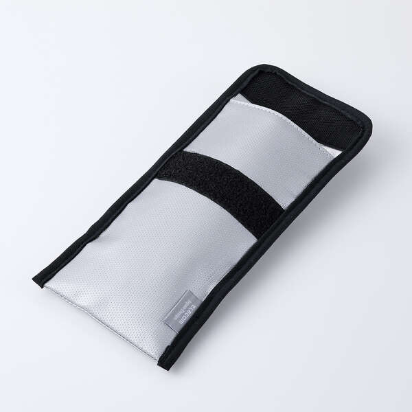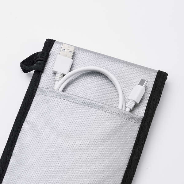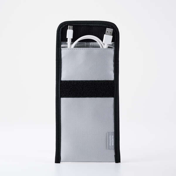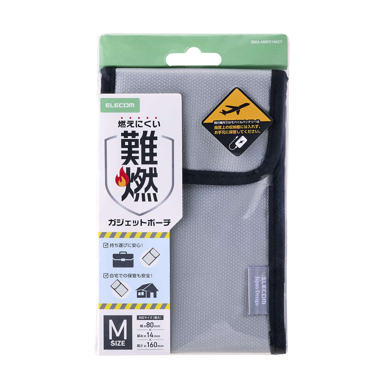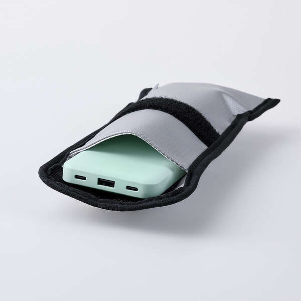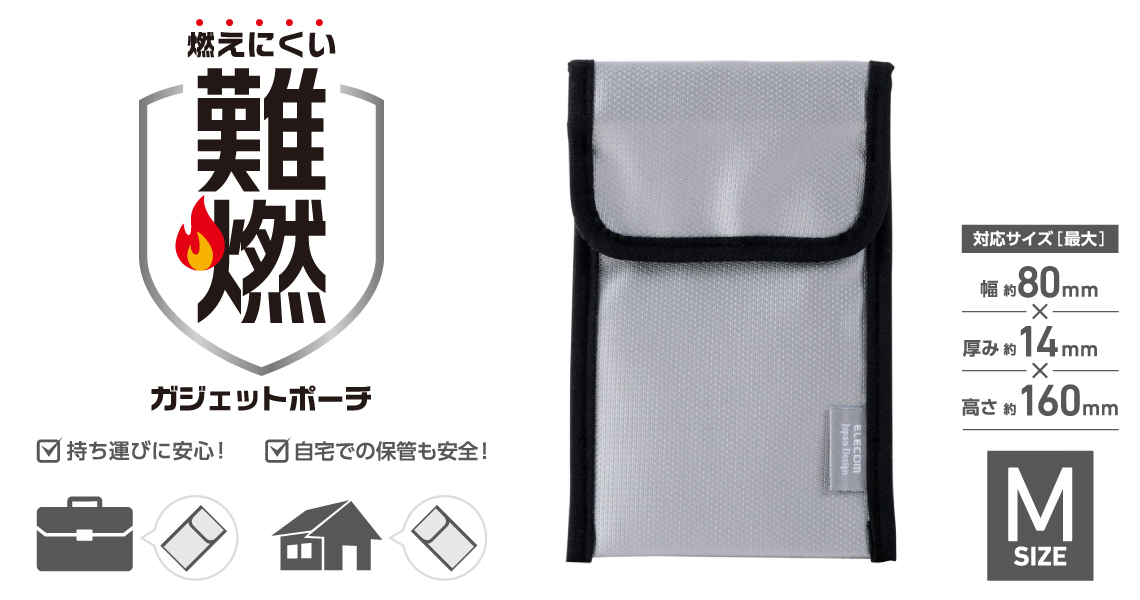 いざというときの備えに!燃えにくい素材のガジェットポーチです。難燃性試験をクリアした生地を二重に使い、すき間をしっかり塞ぐ構造を採用。発火したときの延焼や、火・煙の漏れを抑えます。背面ポケットにはケーブルも収納できて便利。飛行機内への持ち込みや持ち運びに便利なサイズです。